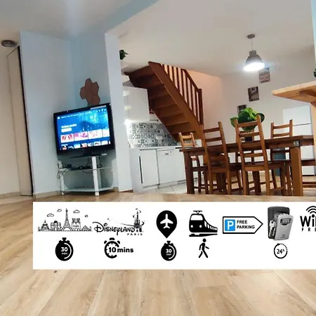 House Near Disneyland And Parisアパ-トメントは,コ-ヒ-・紅茶メ-カ-,ガラス製品 とキッチン用品などの自炊設備を提供しています. アパ-トすぐ近くのCréol'Mexにも数多くの飲食店があります. 宿泊施設から徒歩で5分くらいほどのPlace du Closバス停からバスに乗って,ブシ-・サン ・ジョルジュの他の地域を探索することもできます.